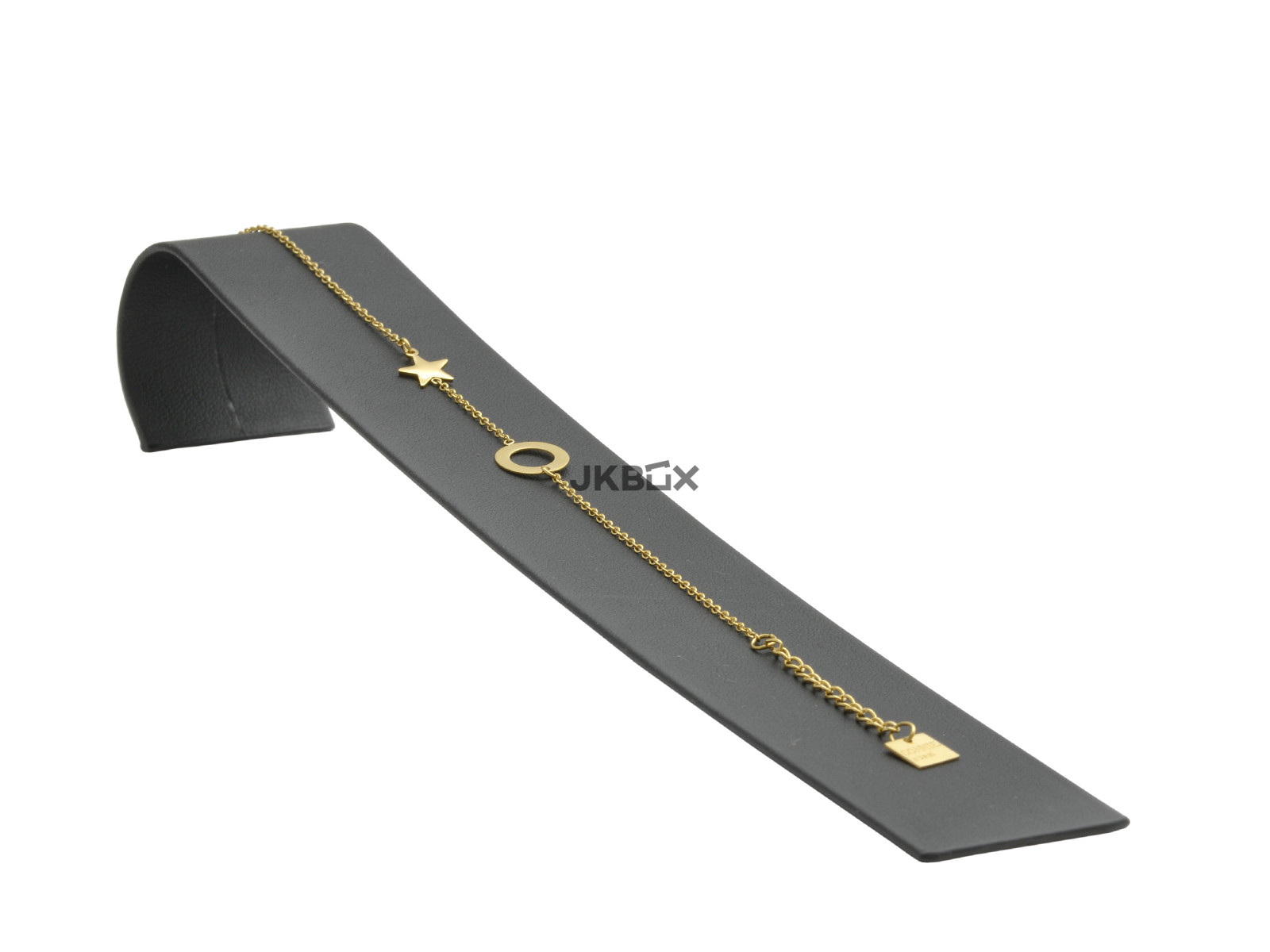 OPIS PRODUKTU - Ekspozytor na bransoletkę. Wykonany z czarnej ekoskóry. Rozmiar: 30x210x30 mm AD-876/A25/S