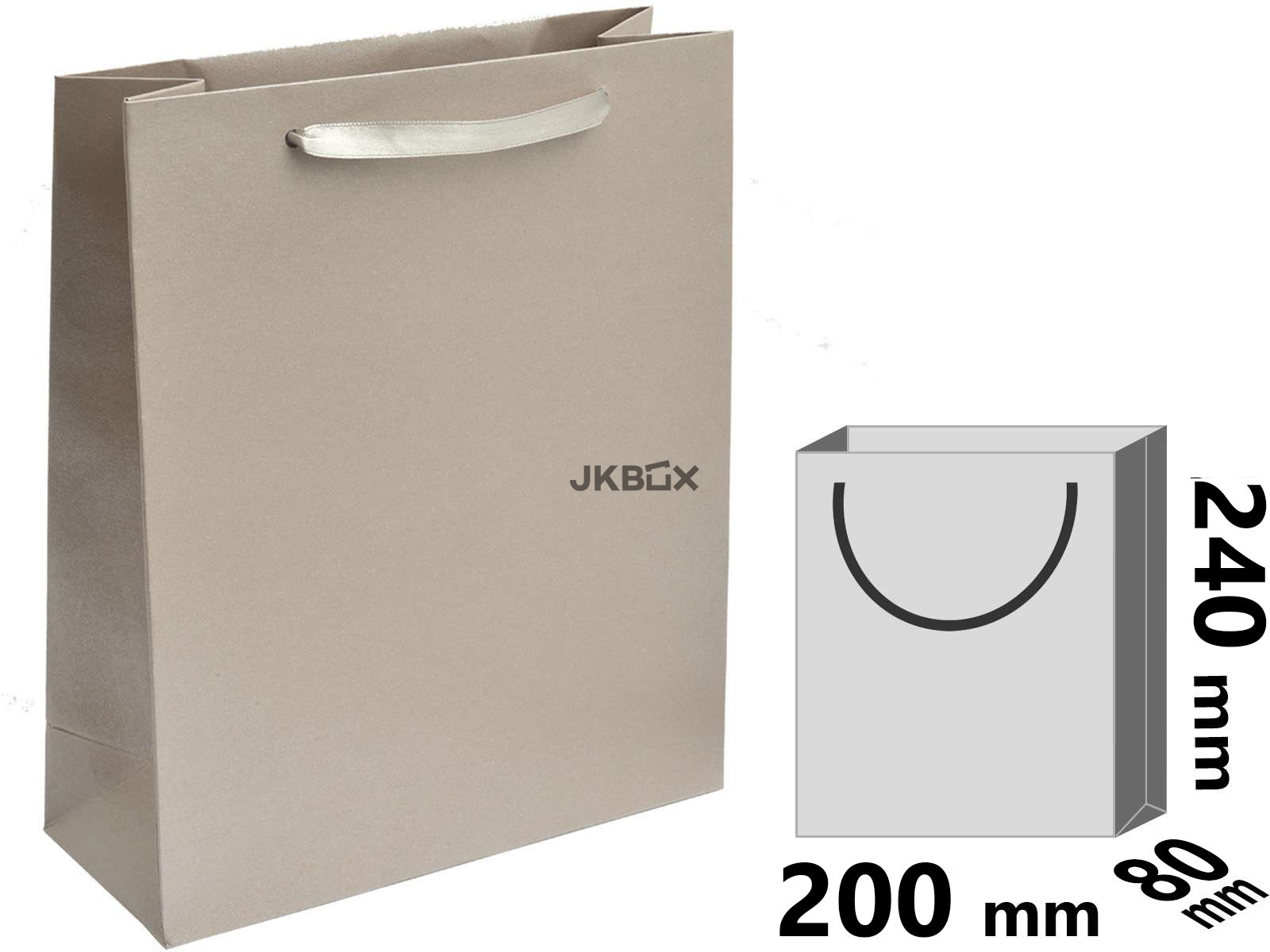 OPIS PRODUKTU - Mała papierowa torebka w kolorze srebrnym o gładkiej perłowej strukturze. Uchwyt wykonany z satynowej tasiemki. Rozmiar: 197x80x240 mm EC-8/AG