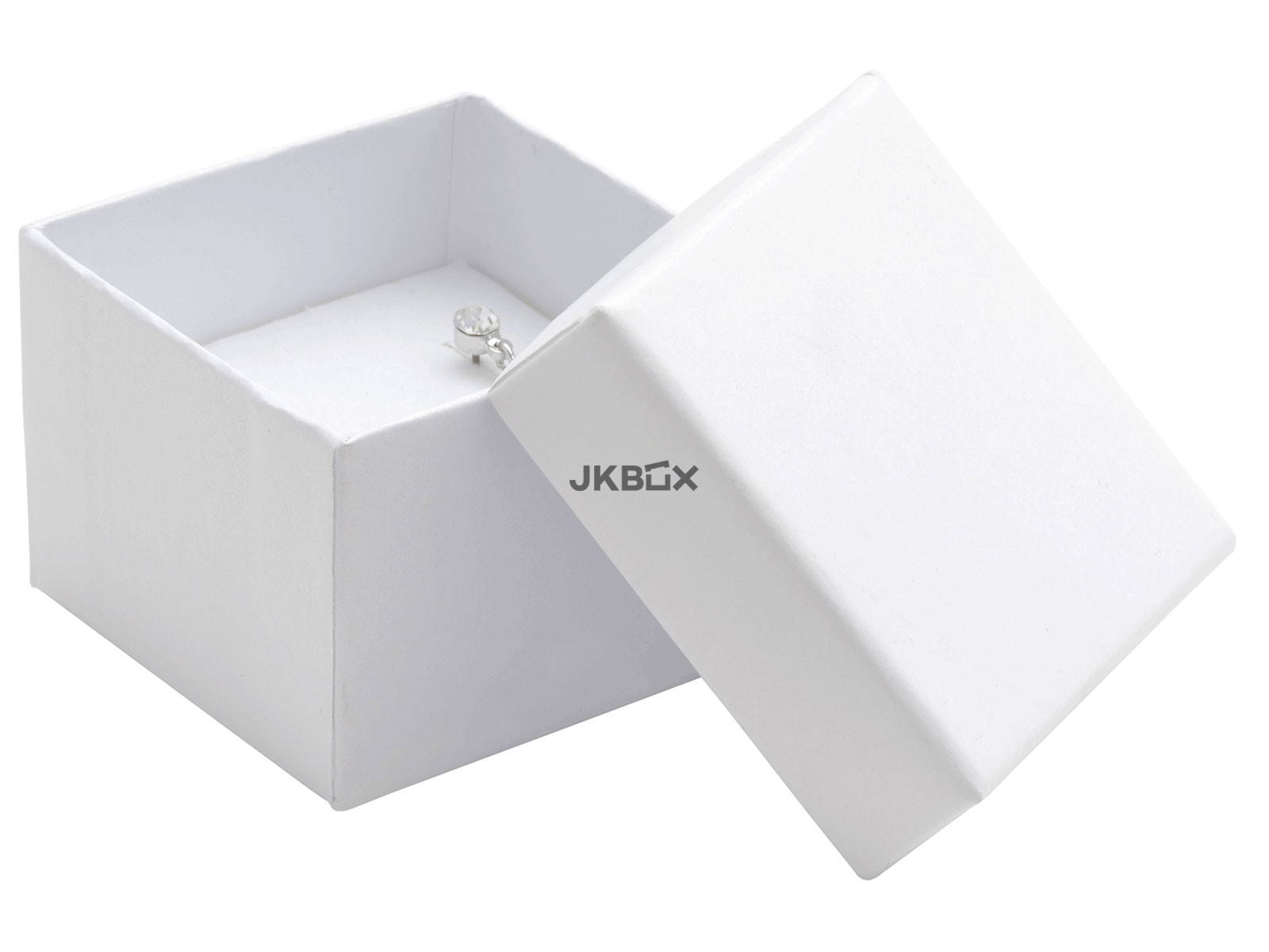 OPIS PRODUKTU - Białe papierowe pudełko, przeznaczone na pierścionek lub kolczyki. Rozmiar: 51x51x38 mm LVK-3/A1