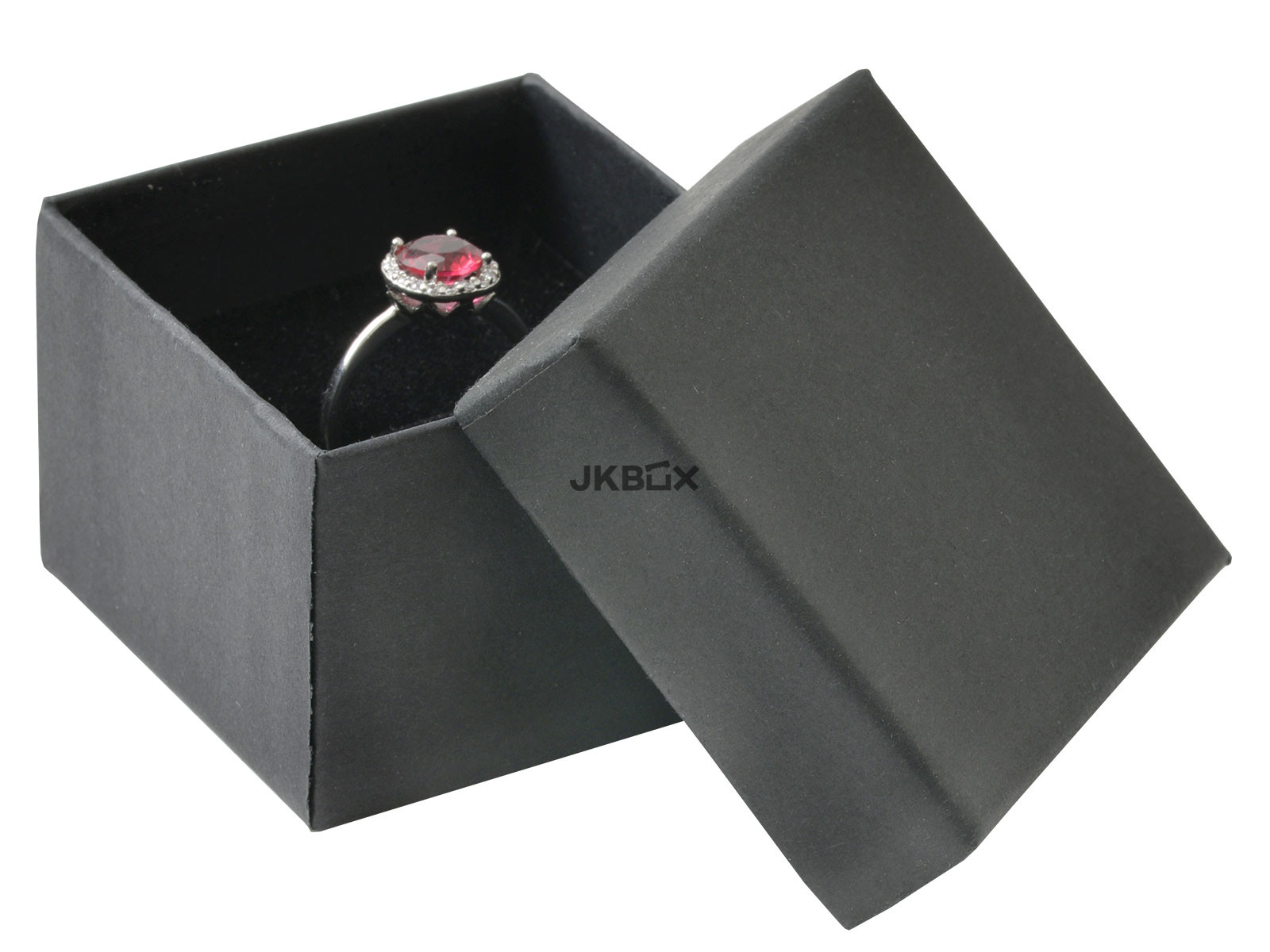 OPIS PRODUKTU - Czarne papierowe pudełko, przeznaczone na pierścionek lub kolczyki, wewnątrz wkładka w kolorze czarnym. Rozmiar: 51x51x38 mm LVK-3/A25